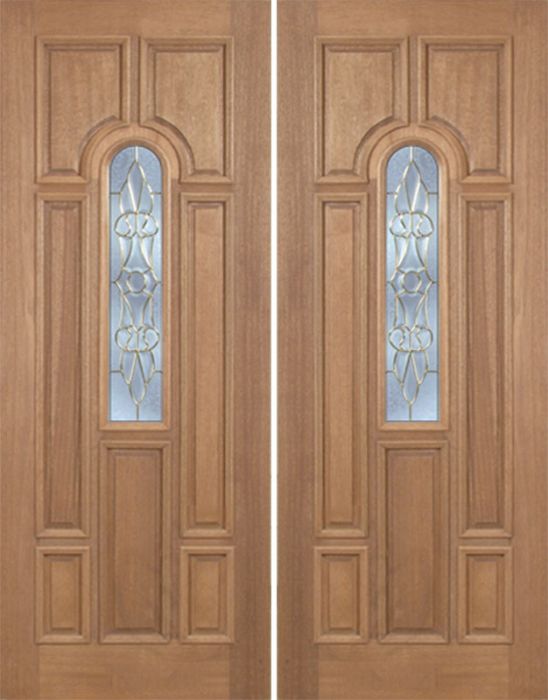 WDMA 60x96 Door (5ft by 8ft) Exterior Mahogany Revis Double Door w/ L Glass - 8ft Tall