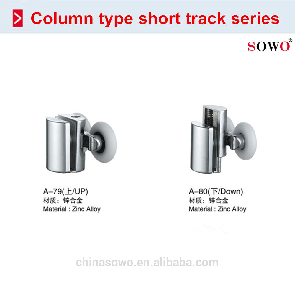 Product Description Product Name Column type zinc alloy glass door roller pulley in Foshan Model SOWO roller pulley A-79 A-80 Material Zinc Alloy Color Electroplating Grass Thinckness 6-8mm Grass open hole 12mm Demension 22-26 mm Mode  Swing Feature Can be mke mute Products Show Other pulley product      ...