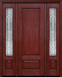 WDMA 54x96 Door (4ft6in by 8ft) Exterior Cherry 96in Two Panel Single Entry Door Sidelights Jacinto Glass