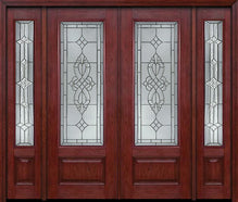 WDMA 88x96 Door (7ft4in by 8ft) Exterior Knotty Alder 96in Alder Rustic Plain Panel 2/3 Lite Double Entry Door Sidelights Jacinto Glass