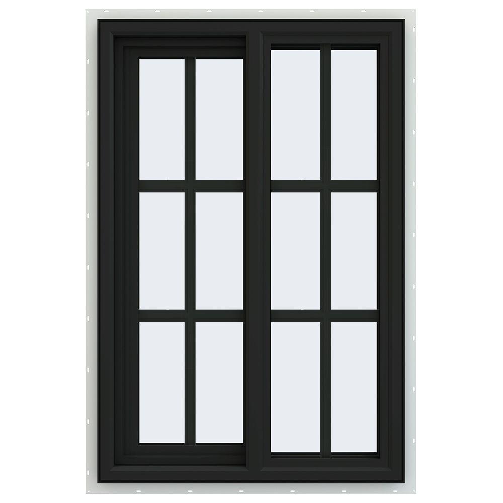 24x36 Bronze Color Vinyl PVC Sliding Window With Colonial Grids Grilles