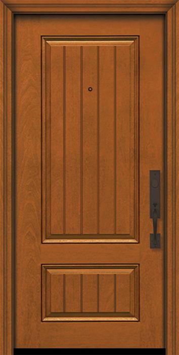 WDMA 32x80 Door (2ft8in by 6ft8in) Exterior Mahogany IMPACT | 80in 2 Panel Square V-Grooved Door