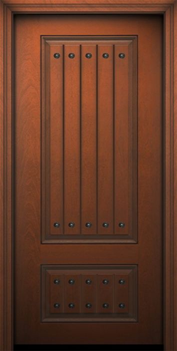 WDMA 32x80 Door (2ft8in by 6ft8in) Exterior Mahogany IMPACT | 80in 2 Panel Square V-Grooved Door with Clavos Attributes Table