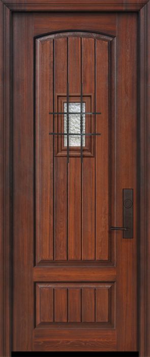 WDMA 32x96 Door (2ft8in by 8ft) Exterior Cherry IMPACT | 96in 2 Panel Arch V-Grooved or Knotty Alder Door with Speakeasy