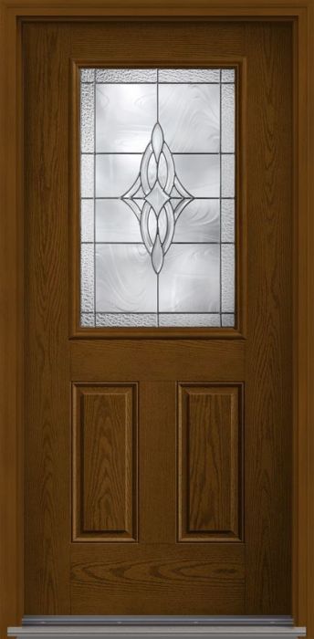 WDMA 34x80 Door (2ft10in by 6ft8in) Exterior Oak Wellesley Half Lite 2 Panel Fiberglass Single Door for Canada