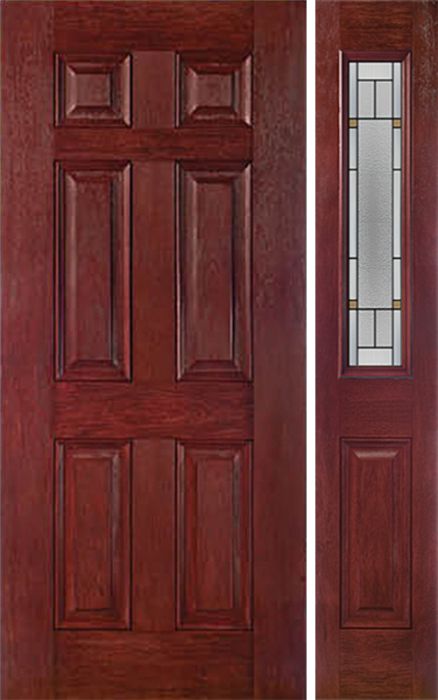 WDMA 42x80 Door (3ft6in by 6ft8in) Exterior Cherry Six Panel Single Entry Door Sidelight 1/2 Lite TP Glass for Canada