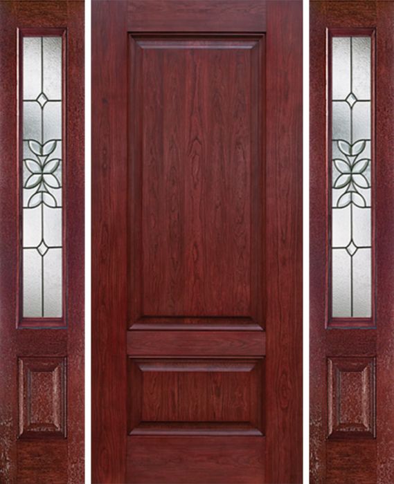 WDMA 54x80 Door (4ft6in by 6ft8in) Exterior Cherry Two Panel Single Entry Door Sidelights CD Glass for Canada