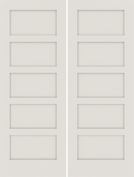 WDMA 56x80 Door (4ft8in by 6ft8in) Interior Swing Smooth 80in Primed 5 Panel Shaker Double Door|1-3/4in Thick