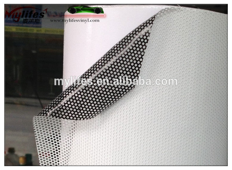 onewayvision/perforated vinyl film for windows(see through)   Sticker(Perforated self adhesive Vinyl film)   size  is :1.07*50M  1.27*50M  1.52*50M Best quality / Competitive price / Always in stock / Fast Delivery/Best Service/ Full Range of products Most cheaper carbon vinyl can not be strechable, and may leave glue. We only sell high quality...