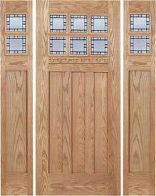 WDMA 60x80 Door (5ft by 6ft8in) Exterior Oak Barnsdale Single Door/2 Full-lite side w/ E Glass
