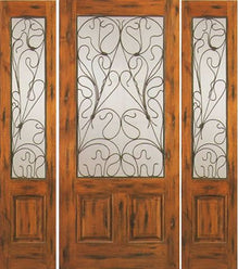 WDMA 66x80 Door (5ft6in by 6ft8in) Exterior Knotty Alder Entry Door with Two Sidelights Twin Lite