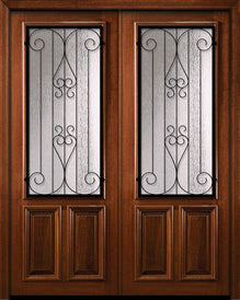 WDMA 72x96 Door (6ft by 8ft) Exterior Mahogany 36in x 96in Double 2/3 Lite Marsala Door
