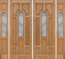 WDMA 96x96 Door (8ft by 8ft) Exterior Oak Carrick Double Door/2side w/ Tiffany Glass - 8ft Tall