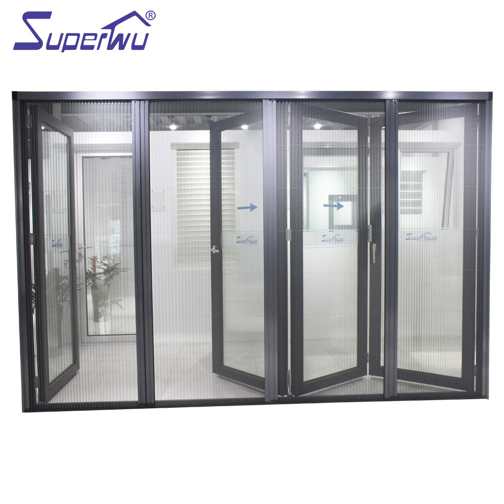 Australian standard AS2047 Cheap interior double glazed aluminium accordion folding doors Product Description Profiles 6063-T5 high quality thermal break aluminium profile, thickness 2.0 mm 6063-T5 high quality non-thermal break aluminium profiles, thickness 2.0 mm PVC/UPVC profiles Glass Double toughened glazing:5mm+12A+5mm (A:Air);5mm+12A+5mm tinted; 5mm+12A+5mm Low-E; 5mm+27A+5mm Single toughened glazing: 3/4/5/6/8/10/12/15/19/21//6.38/11.76mm Laminated glazing: 5mm+0.76+5mm, 5mm+0.38+5mm...