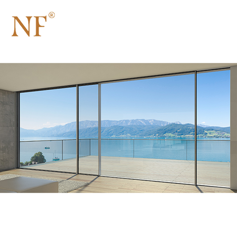 Aluminum grills sliding frameless slim frame large glass window with interlock on China WDMA