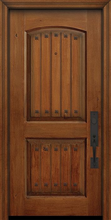 WDMA 32x80 Door (2ft8in by 6ft8in) Exterior Knotty Alder 80in 2 Panel Arch V-Grooved Door with Clavos