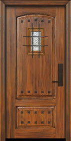 WDMA 36x80 Door (3ft by 6ft8in) Exterior Cherry Pro 80in 2 Panel Arch V-Groove Door with Speakeasy / Clavos