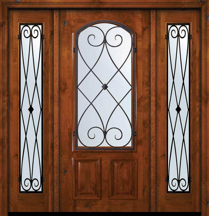 WDMA 64x80 Door (5ft4in by 6ft8in) Exterior Knotty Alder 36in x 80in Arch Lite Charleston Alder Door /2side