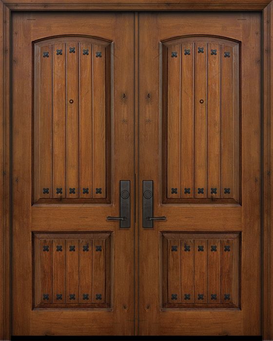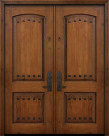 WDMA 64x96 Door (5ft4in by 8ft) Exterior Knotty Alder IMPACT | 96in Double 2 Panel Arch V-Groove Door with Clavos Attributes Table
