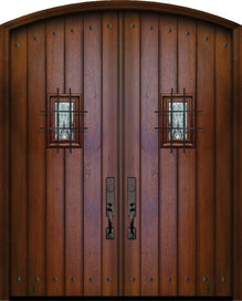WDMA 72x96 Door (6ft by 8ft) Exterior Knotty Alder 36in x 96in Double Arch Top 2 Panel Estancia Alder Door with Speakeasy / Clavos