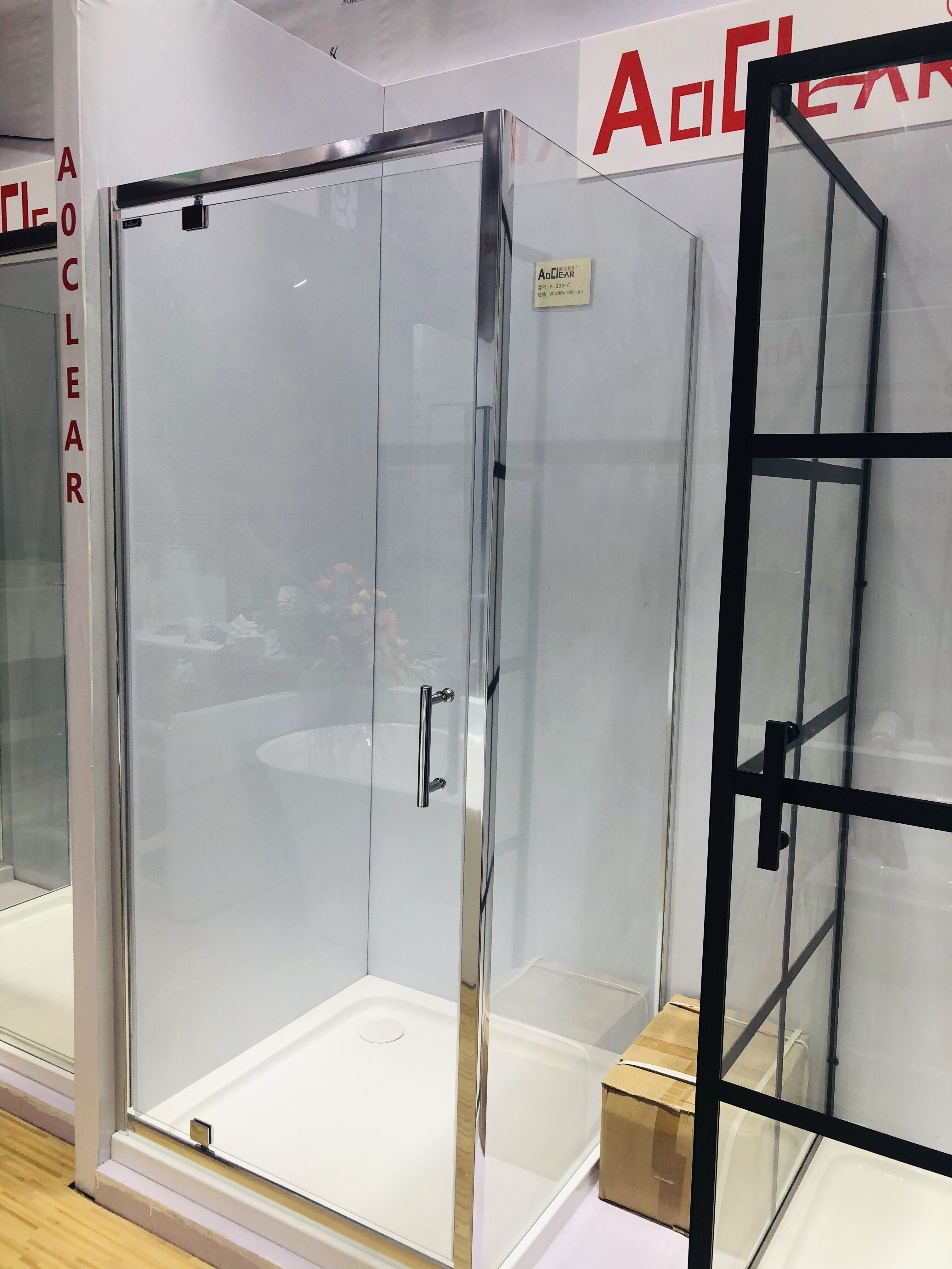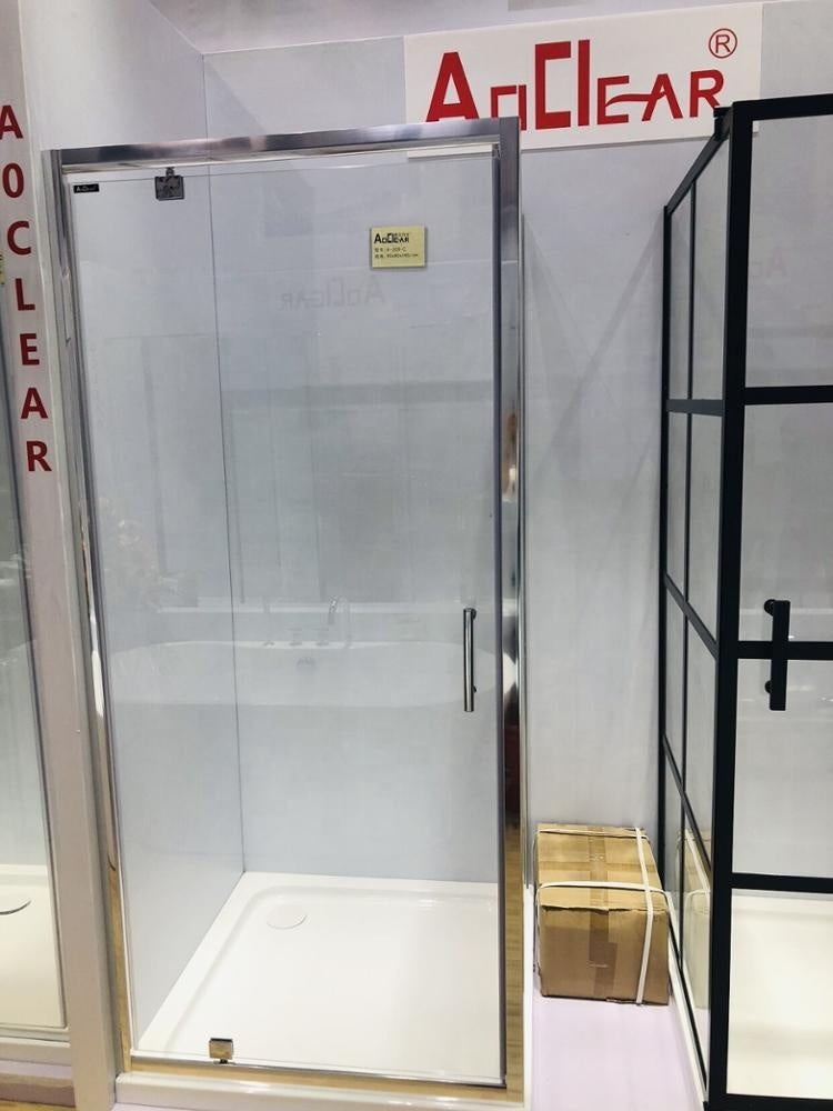 Product Description Model A-209-9-2 Size 90*195CM Door Type hinged door Material Tempered glass, Stainless steel Glass Thickness 5mm Glass Type Clear Frame Finish Chrome Frame Type Framed Shape rectangle Shower base Matching base sold separately Installation Arc Shower base Matching base sold separately Detailed Images Introduction. 1. Chrome finish frame....