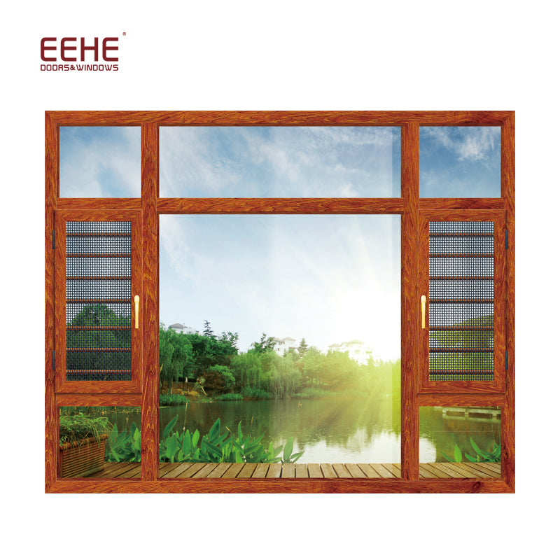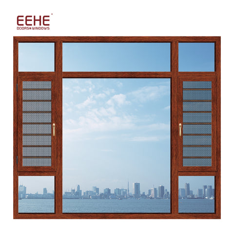 Nigeria Aluminum Window Casement Window With Mosquito Net Frame Details Product Description Type aluminum casement window Aluminum  profiles Material: aluminum alloy 6063-T5 Color: gray/champagne color/wood grain/white/black or other customized colors Thickness: 1.2mm/1.4mm/2.0mm/2.5mm, etc Surface finish   1.powder coating  2.electrophoresis  3.heat transfer for wood grain  4.PVDF coating Glass Material : Single glass,Double glass,tempered glass , floating glass ,insulating glass, reflective glass,laminated glass,low-E glass Color : clear /gray /green/frosted, etc Single :4mm to 12mm  Double :5mm+9A+5mm    6mm+12A+6mm, etc Triple : 5mm+6A+5mm+6A+5mm,etc Sealing EPDM rubber and silicone sealant Hardware SIEGENIA,HOPO,HOPPE,Kinglong,Chinese Brand,etc Package...