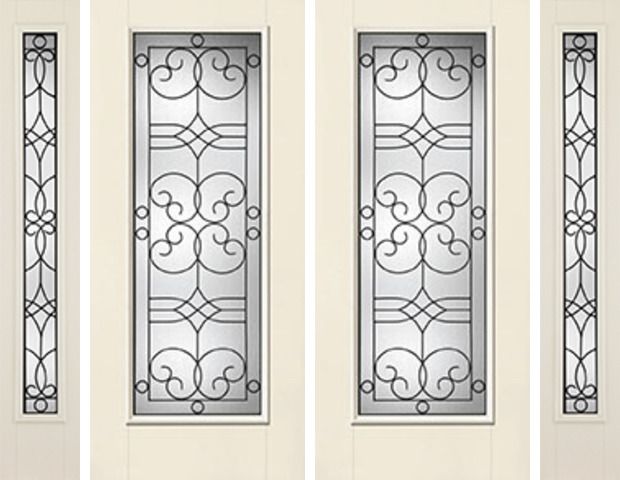WDMA 88x80 Door (7ft4in by 6ft8in) Exterior Smooth Salinas Full Lite W/ Stile Lines Star Double Door 2 Sides Full Lite Sidelight