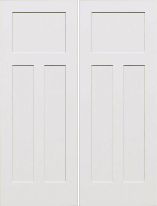 WDMA 64x80 Door (5ft4in by 6ft8in) Interior Barn Smooth 80in Craftsman III 3 Panel Shaker Solid Core Double Door|1-3/4in Thick for Canada