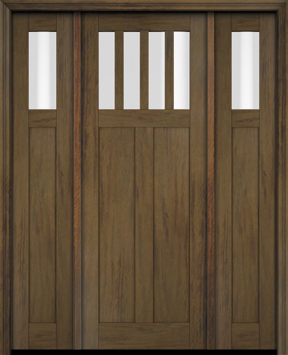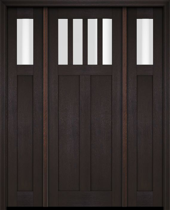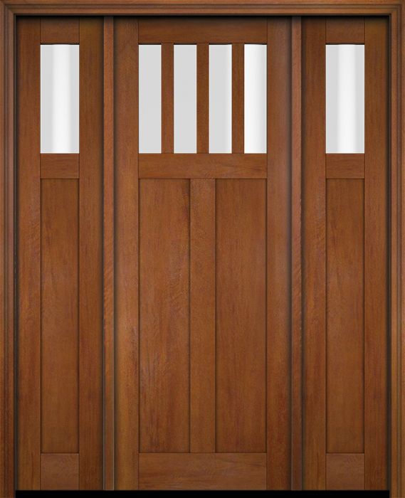 WDMA 68x78 Door (5ft8in by 6ft6in) Exterior Swing Mahogany 4 Horizontal Lite Craftsman Single Entry Door Sidelights for Canada