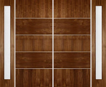 WDMA 112x80 Door (9ft4in by 6ft8in) Exterior Cherry Contemporary Three Center Lite Double Entry Door Sidelights