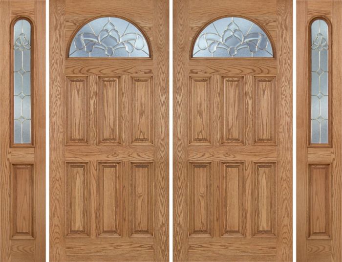 WDMA 112x80 Door (9ft4in by 6ft8in) Exterior Oak Merritt Double Door/2side w/ C Glass for Canada