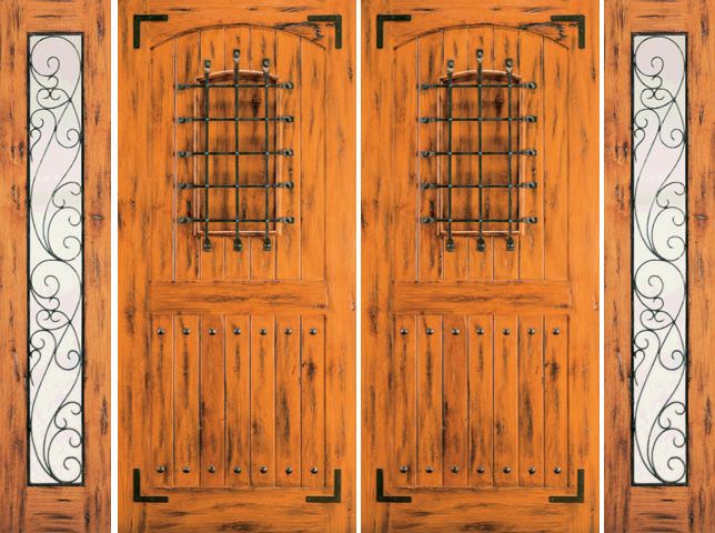 WDMA 96x80 Door (8ft by 6ft8in) Exterior Knotty Alder Double Door with Two Sidelights Front Alder Speakeasy Attributes Table