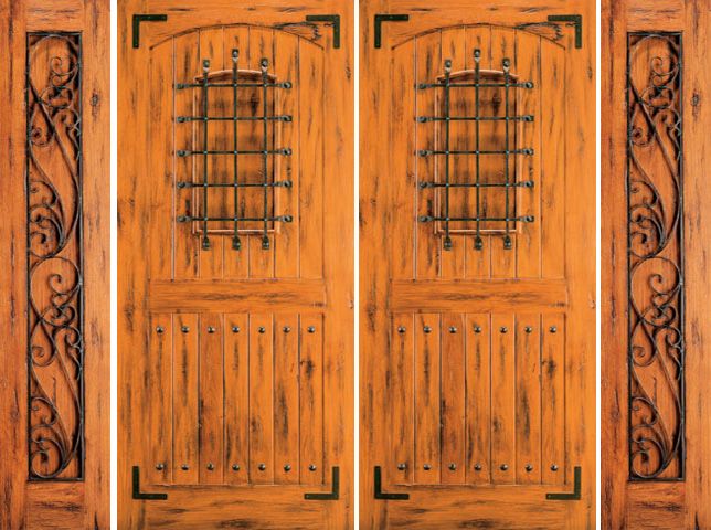 WDMA 96x80 Door (8ft by 6ft8in) Exterior Knotty Alder Alder Front Double Door with Two Sidelights Speakeasy Attributes Table