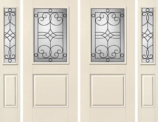 WDMA 88x80 Door (7ft4in by 6ft8in) Exterior Smooth Salinas Half Lite 1 Panel Star Double Door 2 Sides Half Lite Sidelight
