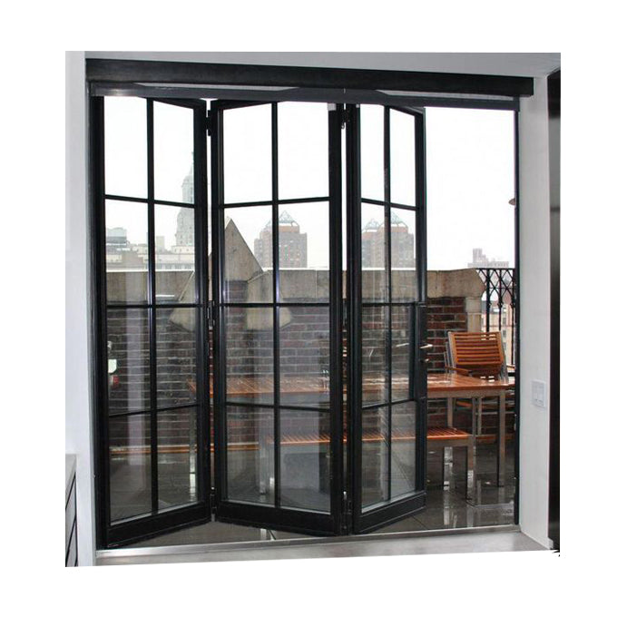 Aluminum Patio Balcony Double Glazed Side Opening Exterior Accordion Folding Door With Grill    Product Features: 1.Top hung ball bearing with smooth feeling. 2.weather seals provide a high degree of weatherproofing and acoustic performance. 3.retractable flyscreen install at interior or exterior. 4.220,330,321,431,550,532,660,633,752,743 etc.,available. 5.Heavy duty with 3m height. 6.Glass accommodate up...