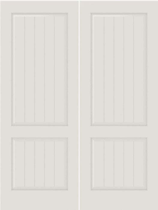 WDMA 20x80 Door (1ft8in by 6ft8in) Interior Swing Smooth SV2010 MDF PLANK/V-GROOVE 2 Panel Double Door