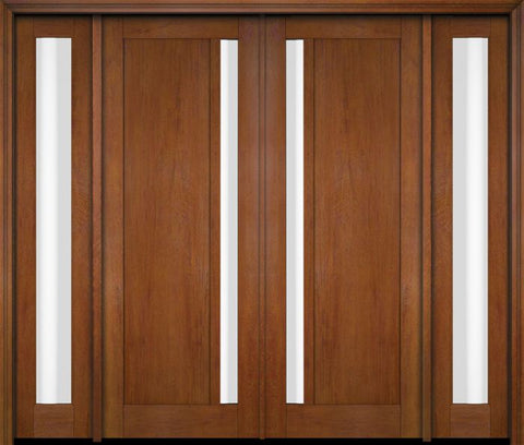 WDMA 76x80 Door (6ft4in by 6ft8in) Exterior Swing Mahogany 111 Windermere Shaker Double Entry Door Sidelights