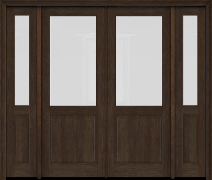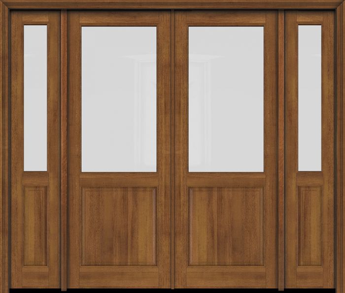 WDMA 76x80 Door (6ft4in by 6ft8in) Exterior Swing Mahogany 1/2 Lite Double Entry Door Sidelights
