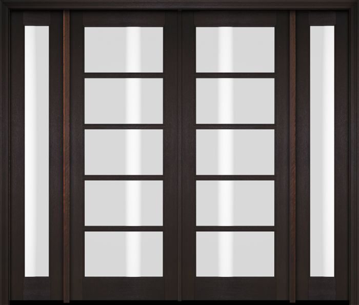 WDMA 76x80 Door (6ft4in by 6ft8in) Exterior Swing Mahogany 5 Lite TDL Double Entry Door Full Sidelights