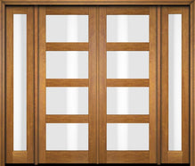 WDMA 76x80 Door (6ft4in by 6ft8in) Exterior Swing Mahogany 4 Lite Windermere Shaker Double Entry Door Sidelights