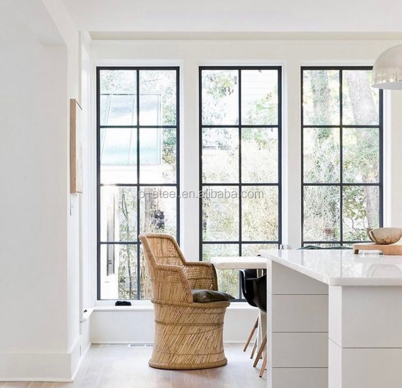 WDMA Pan-steel windows fancy-steel-grill-design galvanized steel framed black flowwater-based coated windows and doors