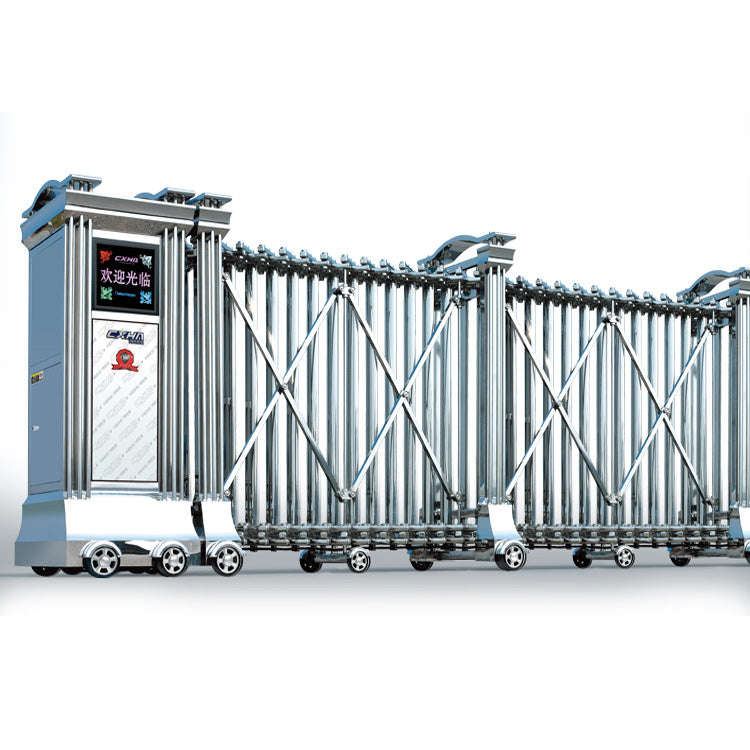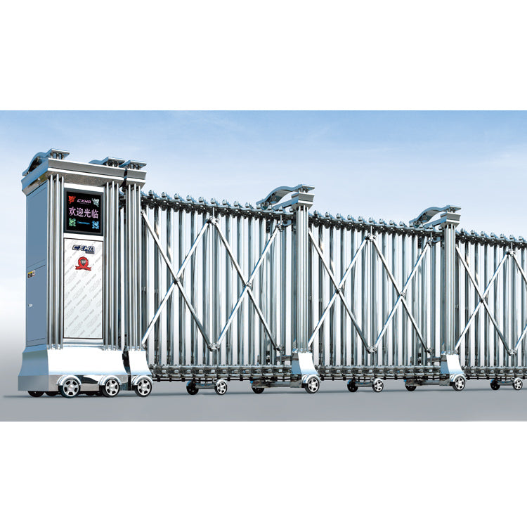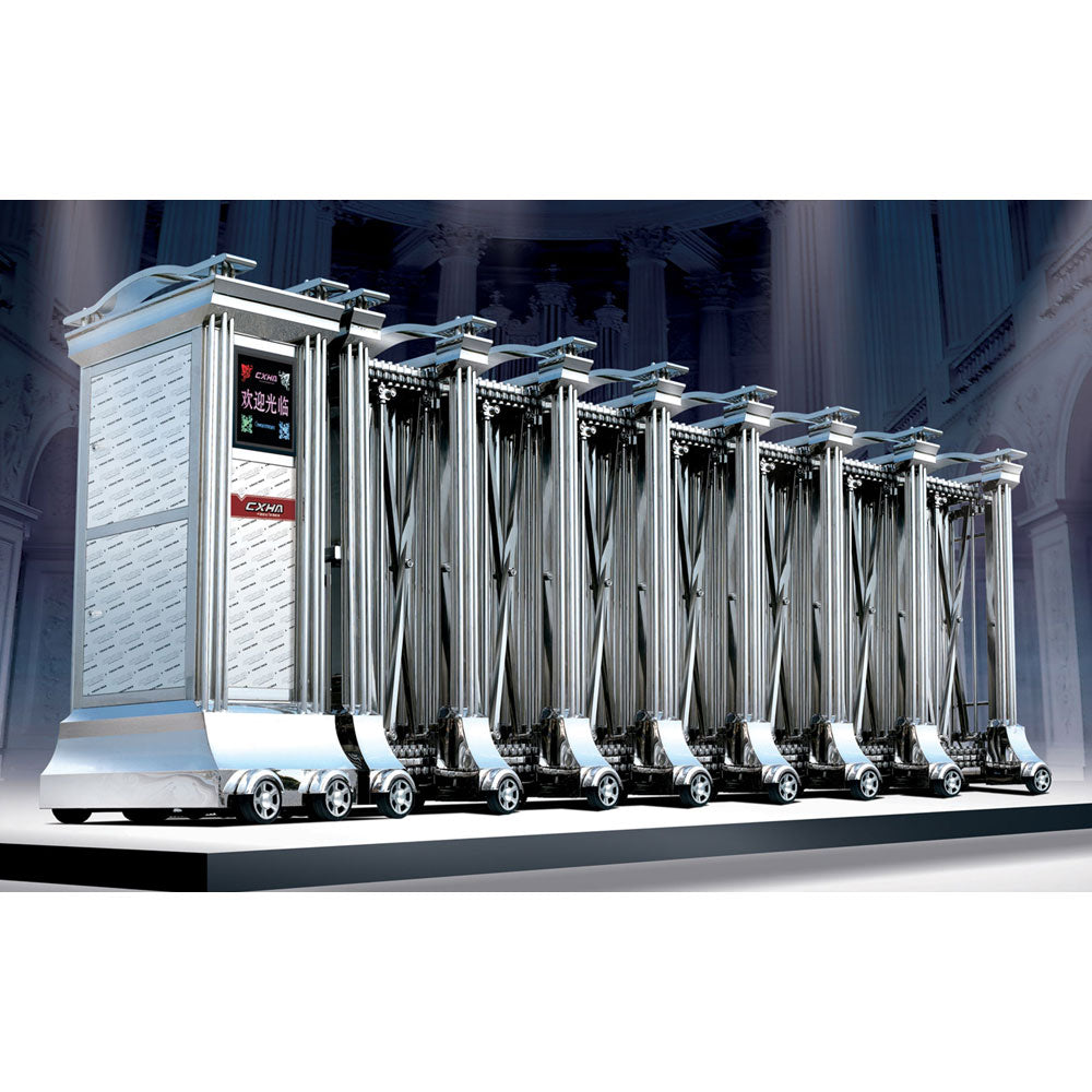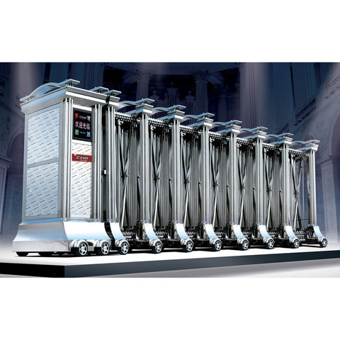Auto Folding Sliding Door from CXHA LTD.     Product Description Specifications   Product Name Automatic Folding Gate Gate Height 1600mm (Customized Height) Gate Width 870mm Wheel Base 810mm (center-center) Surface Treatment 8K Polished Finishing Power Voltage AC220V±20% 50Hz; AC110V±10% 60Hz Moving Speed 18m per min. Remote Control Distance Less than 50m...