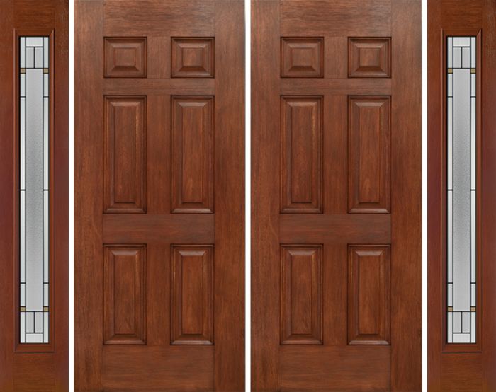 WDMA 84x80 Door (7ft by 6ft8in) Exterior Mahogany Six Panel Double Entry Door Sidelights Full Lite TP Glass for Canada