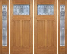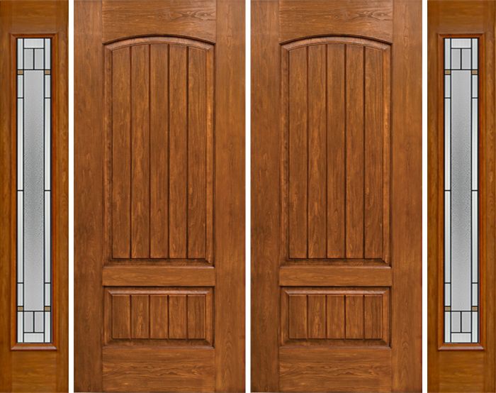 WDMA 96x80 Door (8ft by 6ft8in) Exterior Cherry Plank Two Panel Double Entry Door Sidelights Full Lite TP Glass