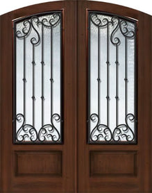 WDMA 64x96 Door (5ft4in by 8ft) Exterior Mahogany 96in Double Arch Top Marbella Iron Cherry Knotty Alder Door