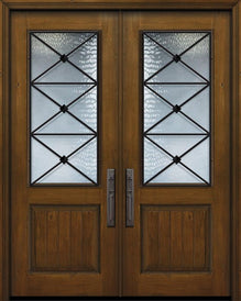 WDMA 64x96 Door (5ft4in by 8ft) Exterior Knotty Alder 96in Double 1 Panel 2/3 Lite Minimal Steel Grille Door for Canada