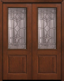 WDMA 64x96 Door (5ft4in by 8ft) Exterior Knotty Alder 96in Double 1 Panel 2/3 Lite Versailles Door for Canada