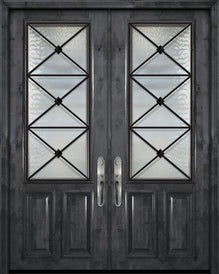 WDMA 72x96 Door (6ft by 8ft) Exterior Knotty Alder 36in x 96in Double 2/3 Lite Minimal Steel Grille Estancia Alder Door for Canada