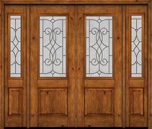 WDMA 88x96 Door (7ft4in by 8ft) Exterior Knotty Alder 96in Alder Rustic V-Grooved Panel 2/3 Lite Double Entry Door Sidelights Ashbury Glass