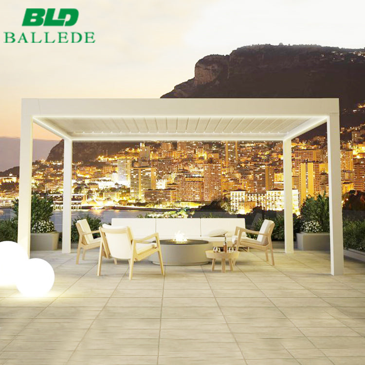 Product Description Material Aluminum alloy 6005 T5 Blades 200*35*2.0mm / 205*50*2.2mm Gutters 100*65*2mm Beams 180*70*2.5mm / 200*70*3mm Posts 126*126*2.5mm / 150*150*3mm Motor Grade IP67 with UL & CE certificate Finish Powder Coated / PVDF match any RAL color Drainage Hidden Drainage System Optional Accessories Side curtains/LED Light/Wind...